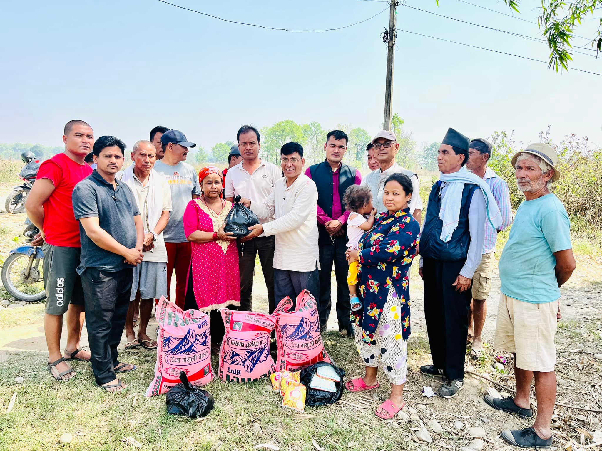 राहत वितरण कार्यक्रममा नेपाली कांग्रेस महाधिवेशन प्रतिनिेधी रामबहादुर श्रेष्ठ, क्षेत्रीय सदस्य कुल बहादुर श्रेष्ठ, नेका ठोरी गापा सदस्य सनम श्रेष्ठ, प्रताप पाख्रीन, नेपाली कांग्रेस वडा नम्बर १ का वडाध्यक्षका उम्मेदवार नवराज फुयाँल लगायतको सहभागिता रहेको थियो । ठोरी गाउँपालिका १ सरस्वती नगर फायरलाइनमा बिहीबार दिउँसो आगलागी हुँदा विकको घर र भान्साघर जलेर पूर्णरुपमा नष्ट भएको थियो । आगलागीबाट १५ लाख रुपैयाँ मूल्य बराबरको धनमाल जलेर नष्ट भएको थियो ।